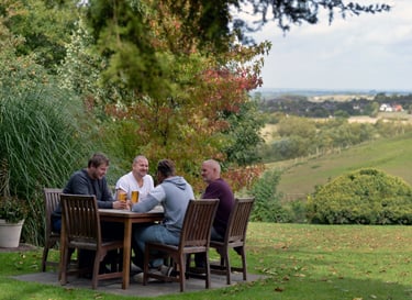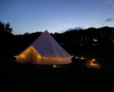 Unwind under the golden sunset in our cozy luxury teepee surrounded by rolling green hills.